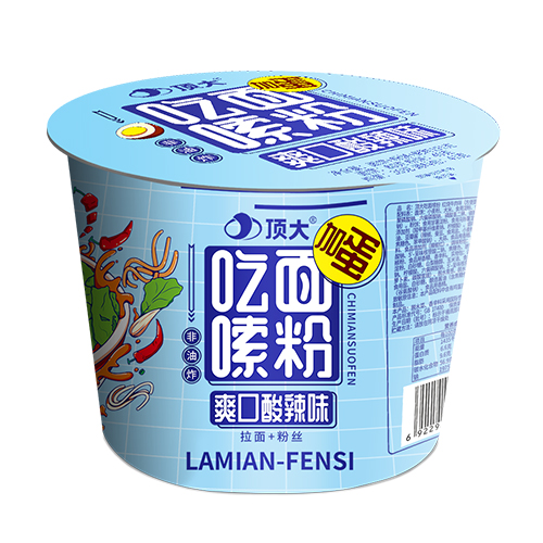 頂大吃面嗦粉 爽口酸辣味發(fā)布日期:2022-10-06 口味:紅燒牛肉味 凈含量:面餅+粉餅+配料191克 面餅:80克 粉餅:40克 雞蛋:30克 調(diào)料包:41克 規(guī)格:191克*12桶 保質(zhì)期:九個(gè)月